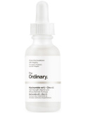 Niacinamid (vitamin B3) har påvisad effekt för att minska intrycket av orenheter och tilltäpptheter. The Ordinary The Ordinary Niacinamide 10% + Zinc 1% är en 10%-ig koncentration av detta vitamin i kombination med zinksalt av pyrrolidon karboxylsyra (PCA) balanserar talgproduktionen.