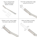 Tweezerman Facial Razor Replacement Blades inkluderar 4 högkvalitativa refillrakblad som passar i verktyget Tweezerman Facial Razor (som säljs separat). Med dessa rakblad avlägsnar du oönskade hårstrån och fjun i ansiktet på ett enkelt och säkert sätt – samtidigt som ansiktet får en skonsam exfoliering. De skarpa rakbladen är gjorda av rostfritt stål; ett hygieniskt och slitstarkt material som är enkelt att rengöra.