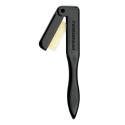 Definierar och separerar fransarna. De helt åtskilda, guldpläterade metalltänderna glider genom fransarna för att avlägsna överskott av mascara.