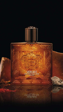 Versace Eros Najim är en kraftfull och förförisk doft för den moderna mannen – karismatisk, magnetisk och med en mystisk dragningskraft. ”Najim” betyder stjärna på arabiska, och doften är just det: en ny stjärna på Versaces dofthimmel, inspirerad av skymningens gyllene ljus över Mellanösterns sanddyner. Doften öppnar med en explosion av italiensk gul mandarin som möter saffran och kardemumma – en livlig inledning med värme och kryddig energi. I hjärtat lyfts oud och cederträ av mjuk karamell, vilket skapar en elegant balans mellan intensitet och mjukhet. Basen är djup och jordnära med patchouli, vetiver och tonkaböna, där rökelse adderar en fängslande, nästan hypnotisk touch som dröjer sig kvar.