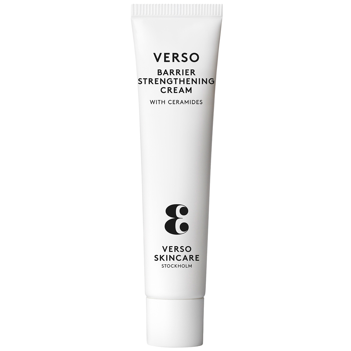 Verso Barrier Strengthening Cream är en barriärstärkande ansiktskräm som återfuktar och vårdar huden, samt boostar dess naturliga skydd. Den är framtagen för daglig användning och är idealisk för torr, känslig hud. Ceramider hjälper till att återställa och förstärka hudens skyddsbarriär, vilket förhindrar fuktförlust och skyddar mot yttre påfrestningar. Hyaluronsyra ger långvarig återfuktning och binder fukt i huden, medan portulakaextrakt lugnar och skyddar mot irritation och rodnad. Den rika och lyxiga formulan tillför optimal fukt som varar, samtidigt som hudbarriären stärks. Resultatet är en smidig och återupplivad hud med förnyad, hälsosam lyster.